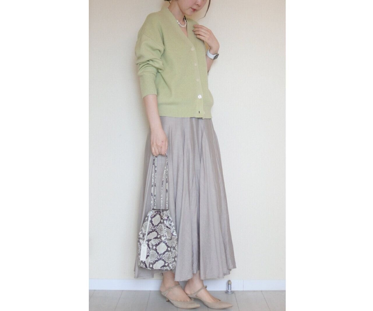 スカートを合わせるときはベージュやネイビーなどのベーシックカラーを合わせると取り入れやすいです。