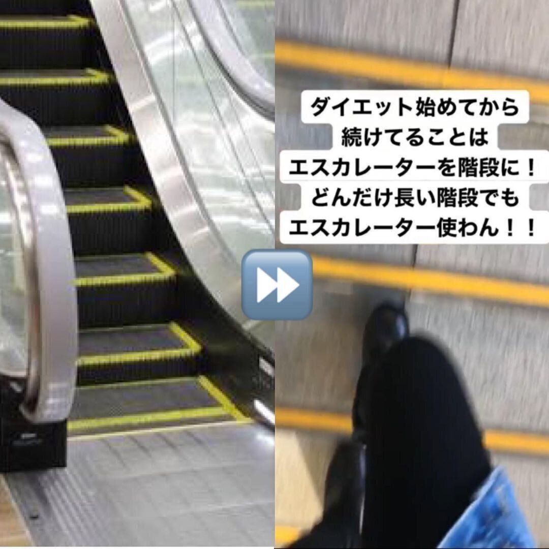 ダイエットを始めてからまず最初に心がけたのが、移動手段を徒歩にシフトすることです。どんなに階段が長くても、エスカレーターやエレベーターを使わず、ひたすら歩いたのだといいます。これだけでも、かなり効果を感じられたのだとか。