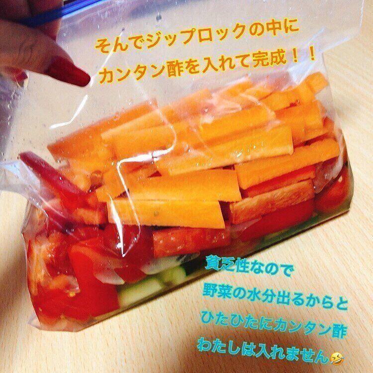 食生活では、酢と野菜をたっぷり使ったピクルスを取り入れています。野菜に酢を加えるだけで完成するのでとても簡単です。特におすすめの野菜は、パプリカとミニトマト。残った漬け汁も捨てずに、スープに混ぜたり、肉といっしょに炒め物や煮物にしたりと活用しています。