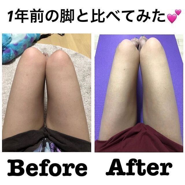 脚痩せのために、ワイドスクワット・動画を見ながらの筋トレ・半身浴・風呂上がりのマッサージ・睡眠時に着圧式スパッツを履くことを毎日続けたそうです。どんなことでも、とにかく毎日続けることで結果がついてきたといいます。ビフォーアフターでしっかり変化が現れると、さらなるモチベーションアップにもつながりますね。