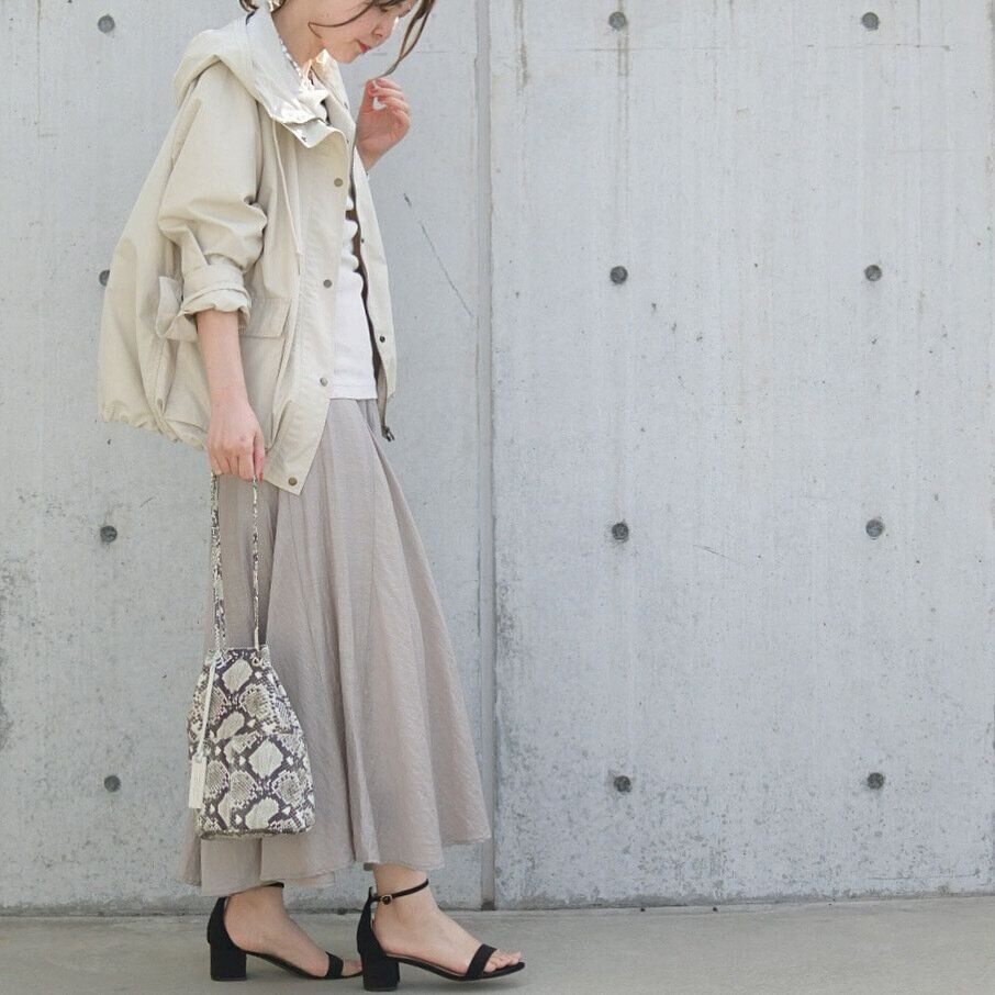 暖かくなったらTシャツやフレアスカートとあわせてフェミニンに。スカートスタイルが甘くなりすぎるときもほどよくカジュアルダウンしてくれます。スカートにもパンツにも合わせやすいのはじつは秘密があります。