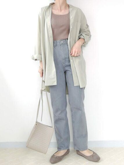 暑くなってきたら、さらりと羽織って紫外線対策に。タンクトップ×デニムのシンプルコーデにON。グレイッシュなトーンでまとめて、大人っぽいトレンドカジュアルコーデの完成!