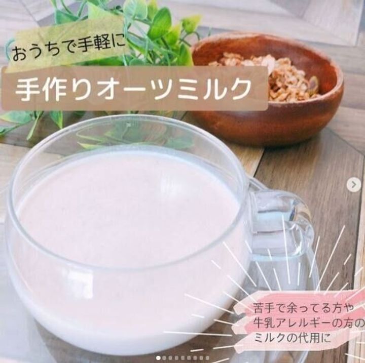オートミールと水をミキサーで混ぜて、手づくりのオーツミルクをつくりました。そのまま飲むのはもちろん、ココアやコーヒーにプラスしたり、スープやホワイトソースなどに使ったりとアレンジ自在。オートミールが余ってしまったときの消費や、牛乳の代用品としてもおすすめです。
