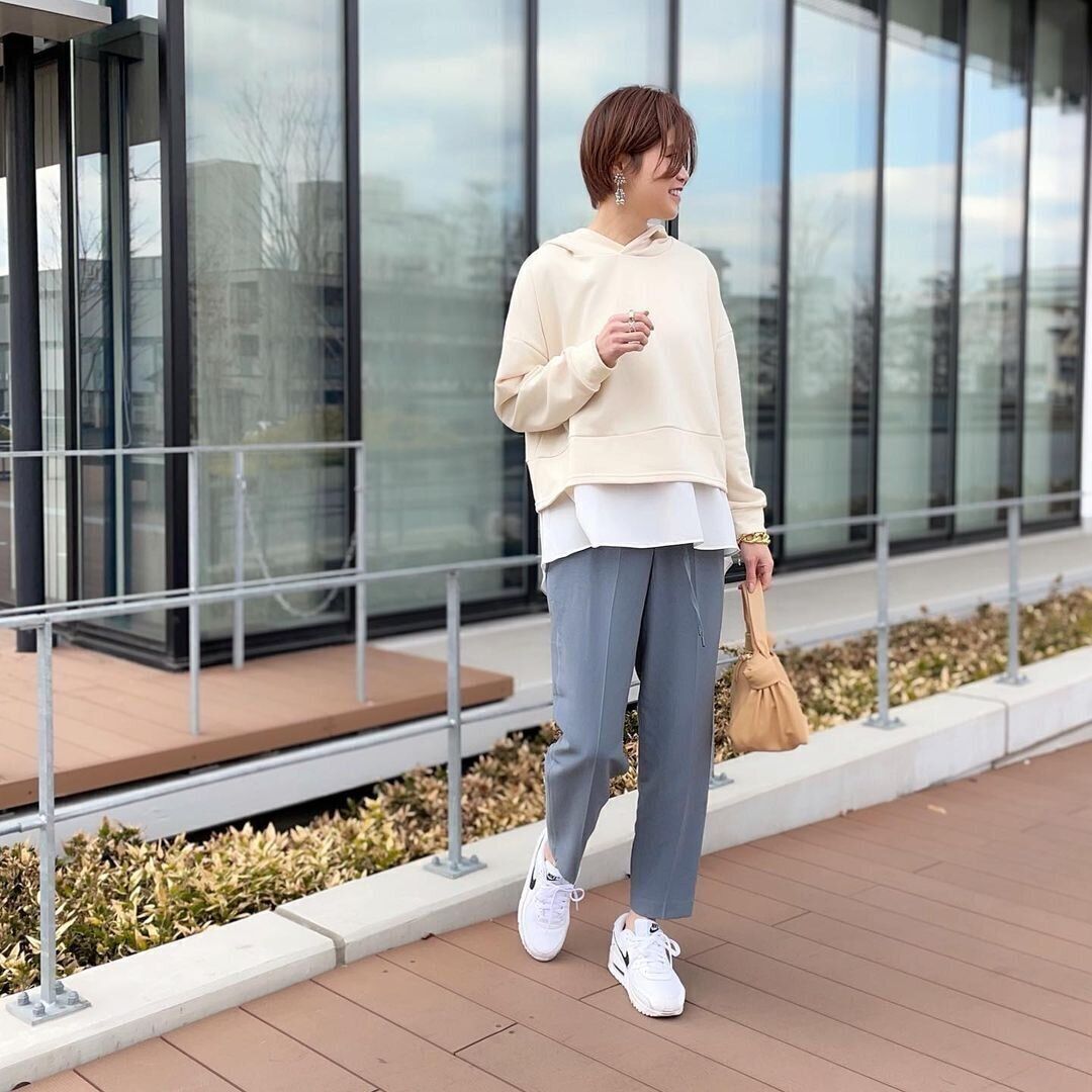 センタープレス入りパンツでフーディをクリーンに