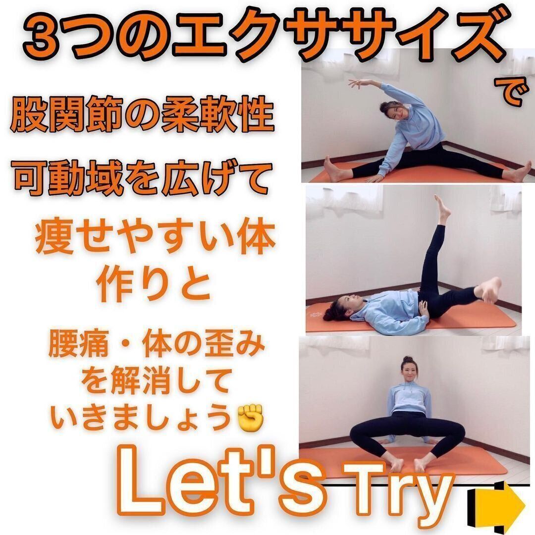 こちらは、股関節の柔軟性をアップして、下半身をすっきりさせる3つのエクササイズ。股関節の可動域が狭いと、骨盤周りの筋肉が硬くなり痩せにくくなってしまうのだとか。胸式呼吸でインナーマッスルを鍛えながら行い、さらに痩せる体づくりを目指しましょう。
