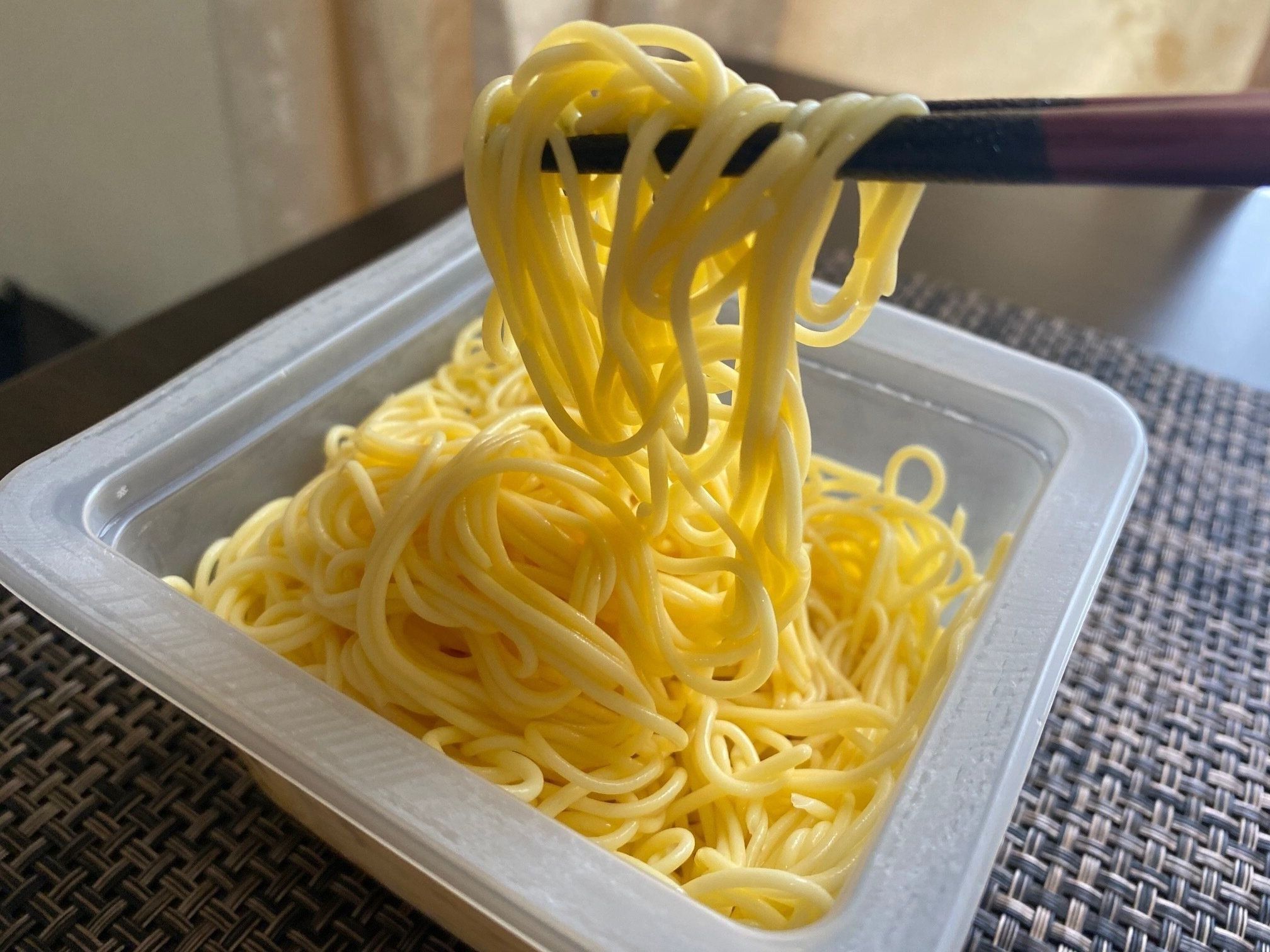 1パックで83kcal、糖質は12.3g(麺状玉子とうふ、つゆ含む)と、定番のツナマヨおにぎり253kcal、糖質34.4g(※)を比較するとそのヘルシーさが際立ちますよね。