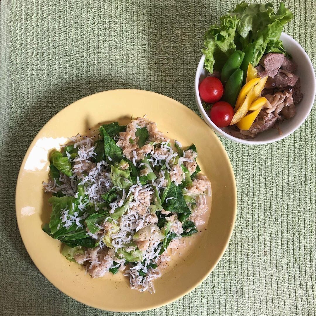 元ダイエッターで、今は料理人として活躍するdolo.yu3さん。今でも、タンパク質はしっかり、脂質や糖質はほどよくとれる、栄養バランスを意識した朝食を心がけています。この日は春キャベツとしらすを加えたオートミールです。ほどよくしんなりしたキャベツと、しらすの塩気が相性バツグン!