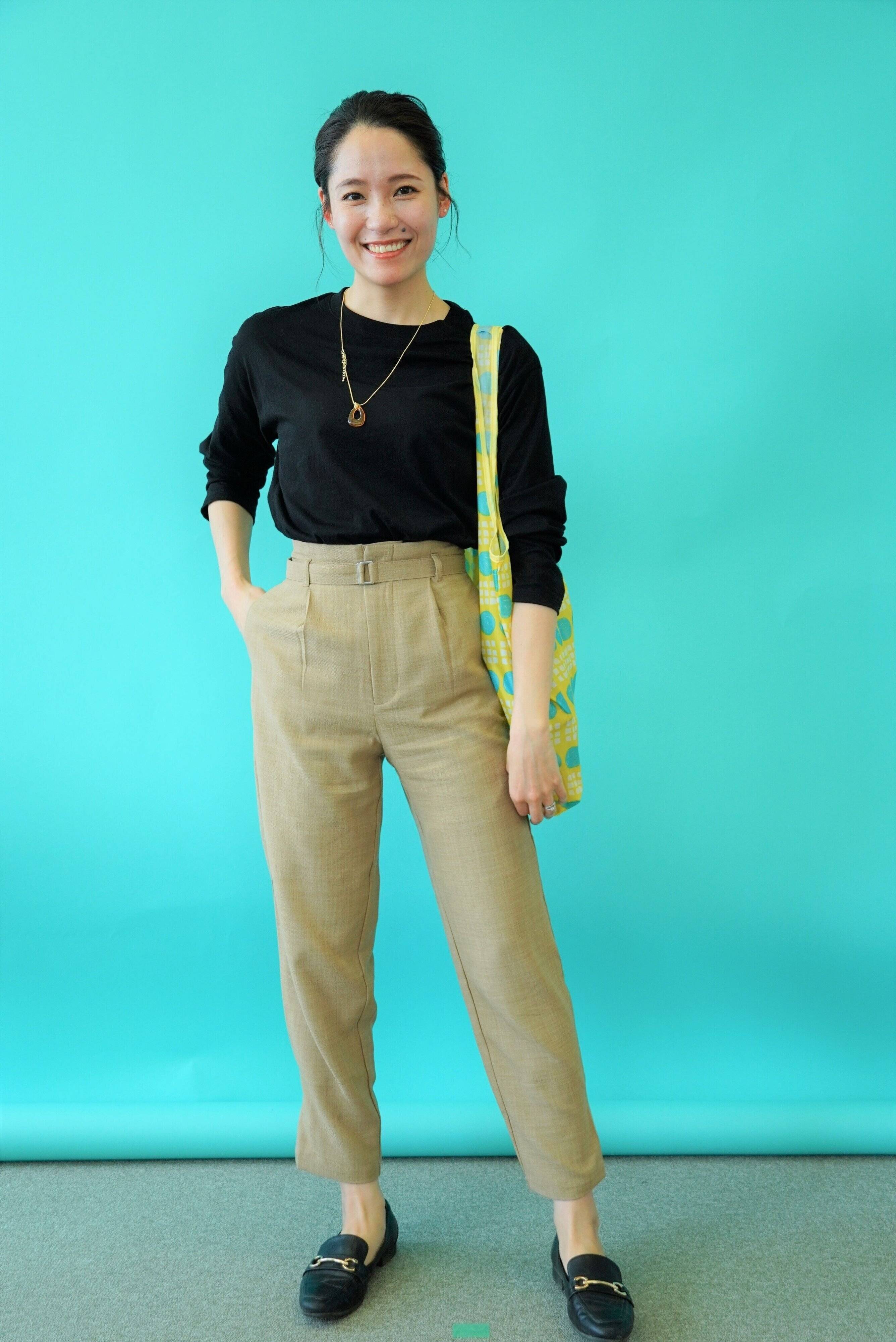 トップスはカジュアルでも、パンツにベルトや裾のボタンなどアクセントがついているものをチョイスすれば、お洒落感がアップ!急遽スーパーへ夕ごはんの食材を買いに行くことになっても、ボトムスを履き替えるだけでOK!なコーデです。