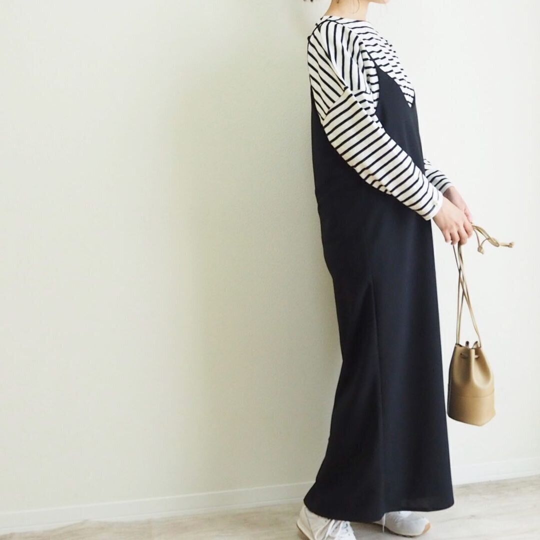 華やぎが加わるキャミソールワンピースのインナーにボーダーカットソーを加えてみるのもおすすめです。一味違ったボーダースタイルに「マネしたい!」が殺到しそう!