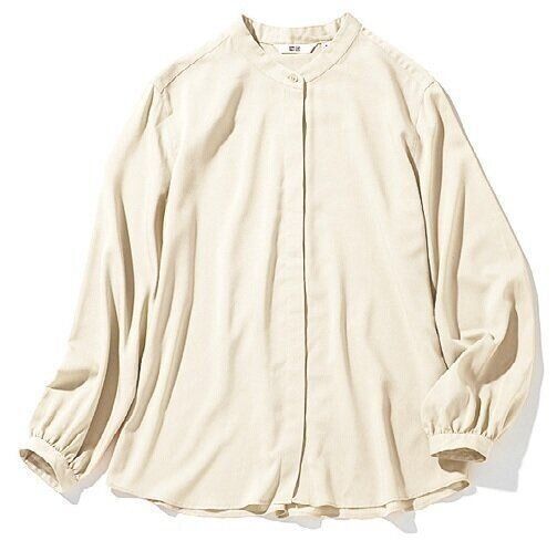どんなボトムにも合わせやすい絶妙なベージュ。きちんとはしているけれど、かしこまって見えないノーカラーもポイント。日常使いしやすい一品です。