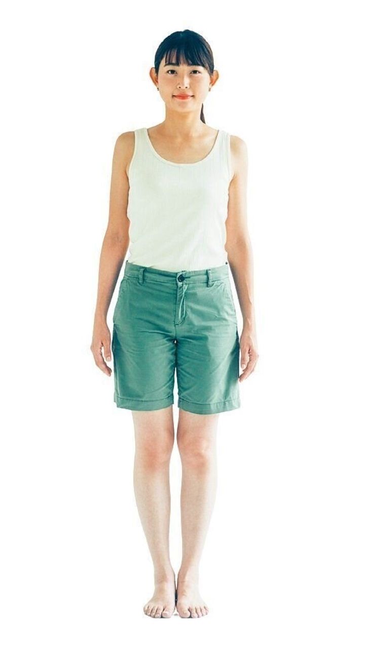 身長156cm。体の厚みをあまり感じさせないウェーブタイプ。「ずばり下半身が太く、脚が短いのが悩み。最近、お尻も下がってきた気が……(涙)」。