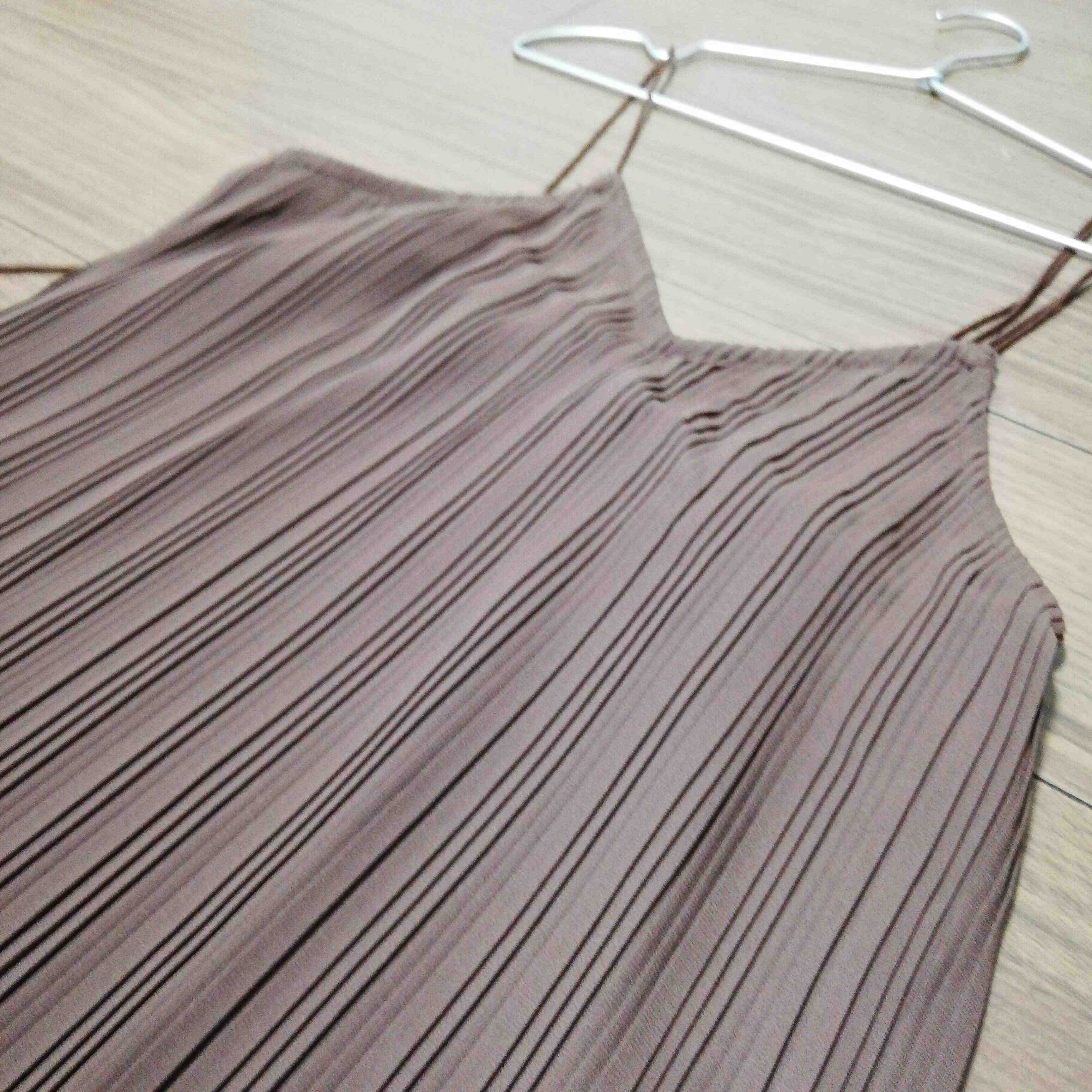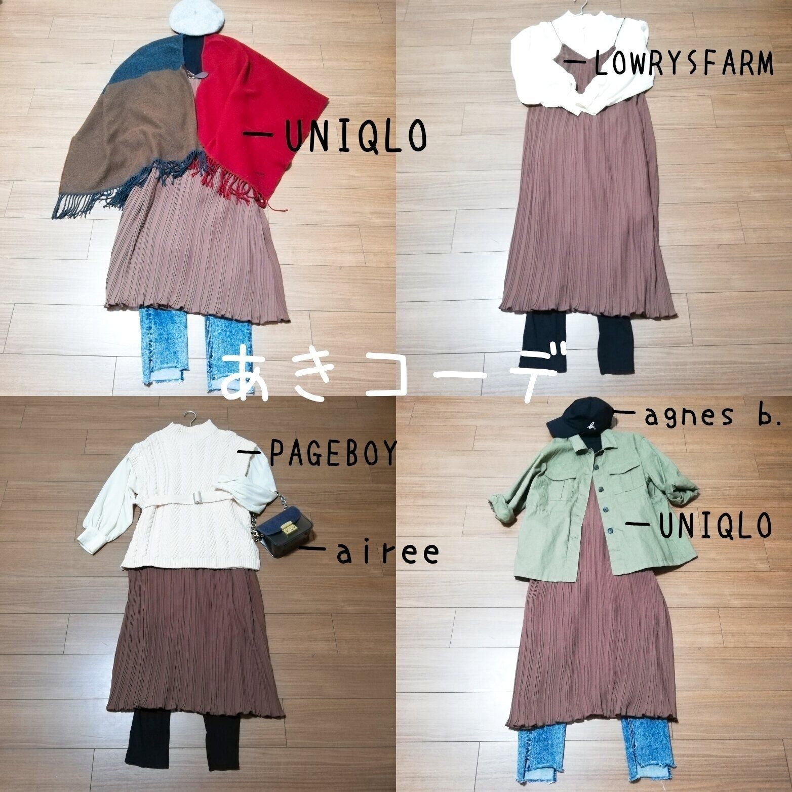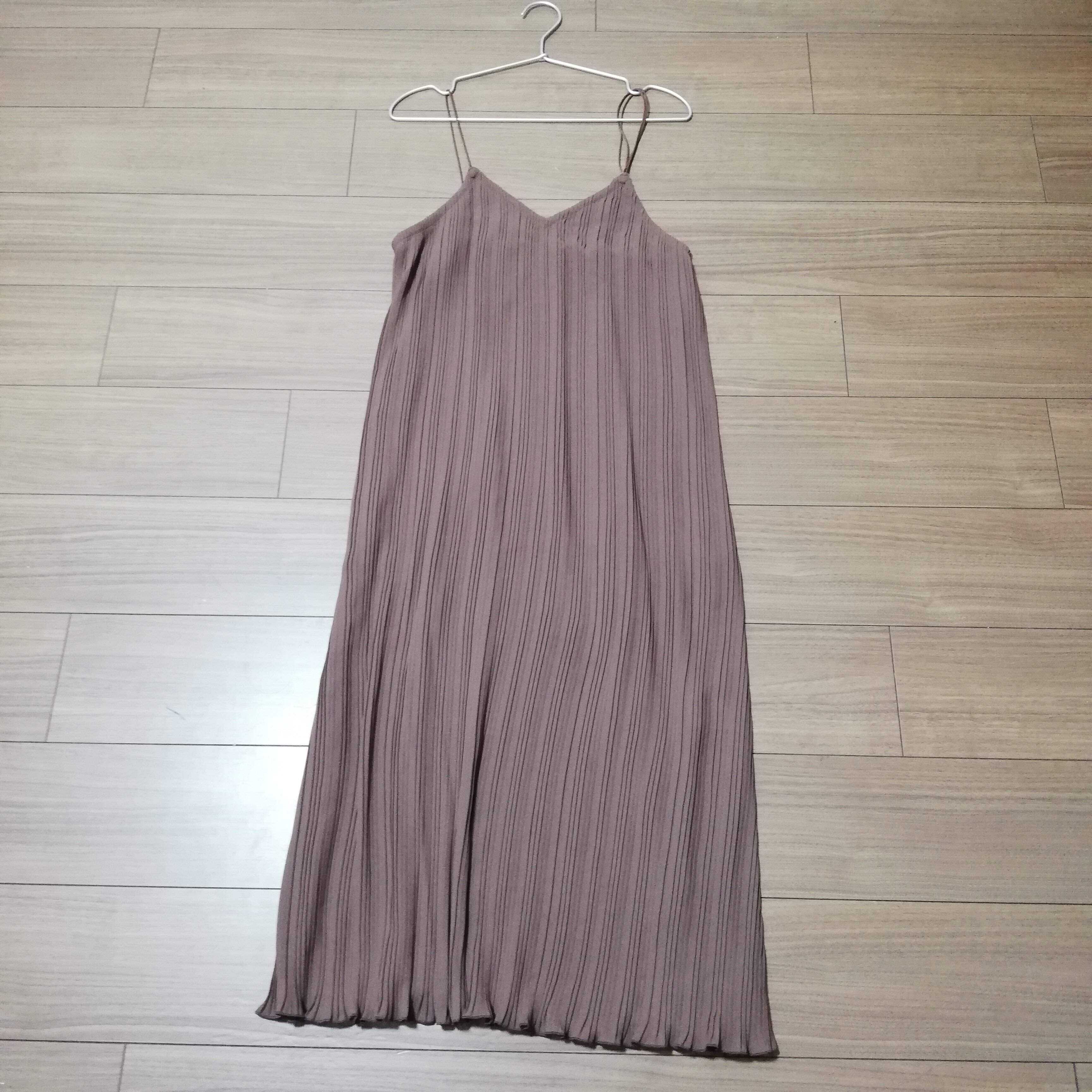 落ち着いた色味の細かいプリーツで、ワンピースの下はパンツスタイルと合わせるのがトレンドなので、ワンピースに抵抗がある方でも取り入れやすいアイテムです。