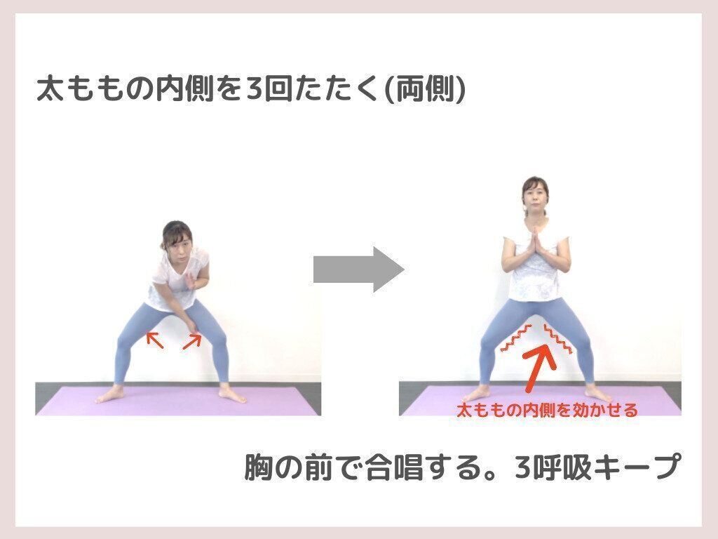 ここで太ももの内側を叩いておくと、太ももの内側に意識が向けやすく、カラダが「太ももの内側を使うんだ!」と認識してくれます。