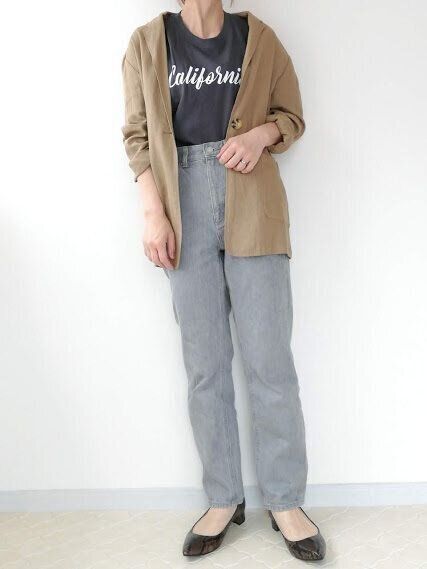 夏の羽織りとしてもおすすめなリネンジャケット。柔らかいので袖のロールアップも楽にできますよ。