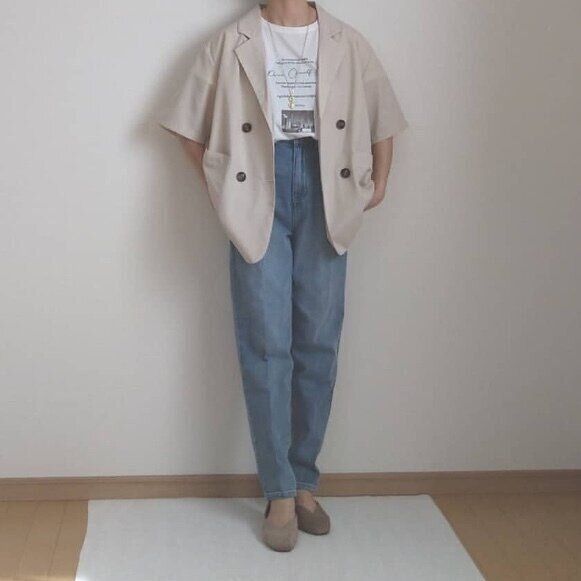 今期は淡カラーコーディネートがトレンドなので、とくにベージュの夏ジャケットは1枚持っていたいマストアイテム。
