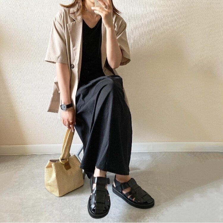 ワンピースと合わせればマニッシュな印象をプラスしてくれて、同じ服でもまったく違うイメージのコーディネートが完成します。