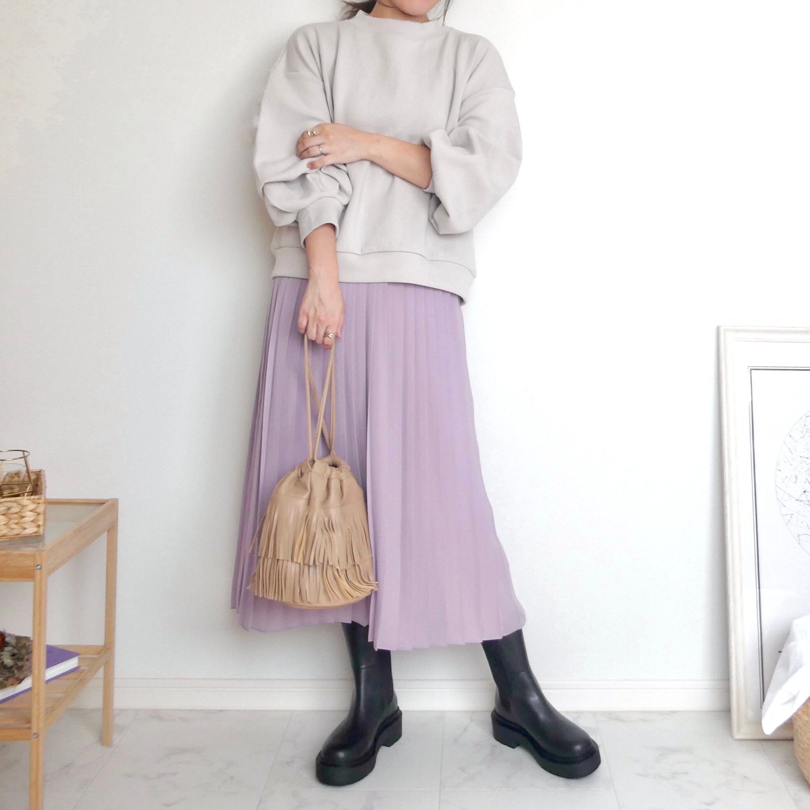 スカートにもあえてゴツめの靴を合わせるのが今年のトレンド。