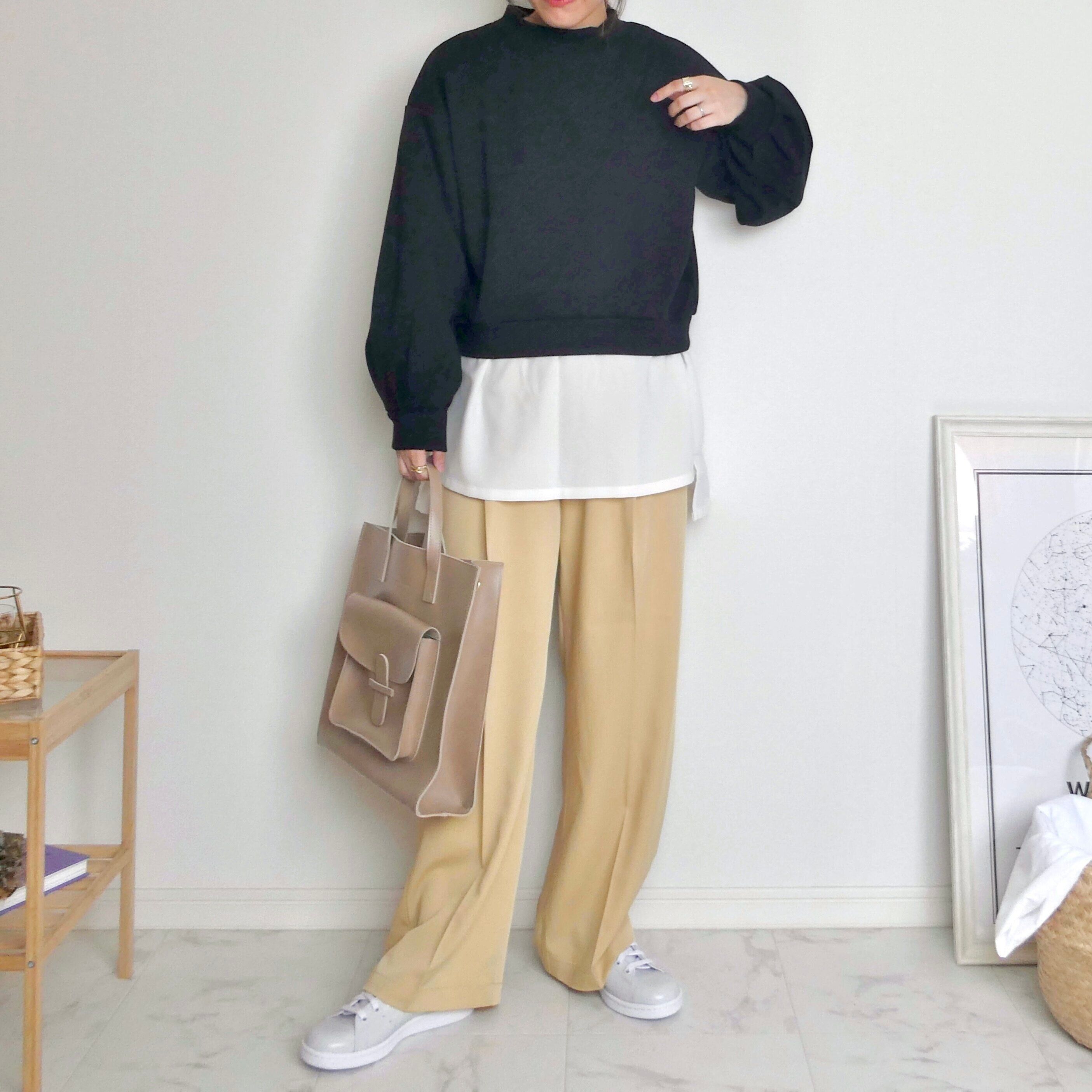 短めの丈をいかした今年トレンドのレイヤードスタイル。
