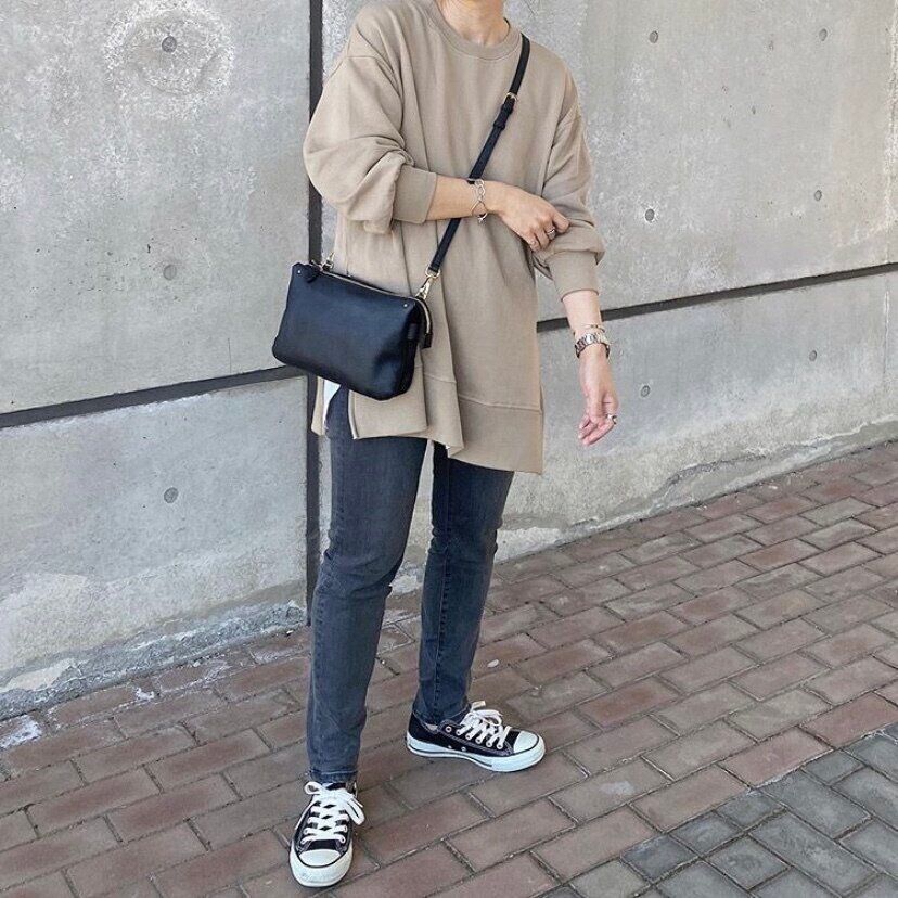 これからの季節にピッタリのオーバーサイズニットに合わせたコーディネート。