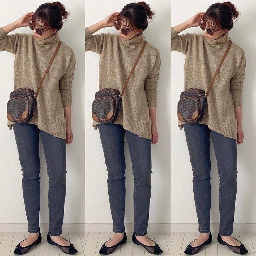 ゆったりしたニットにスキニーデニムを合わせるスタイルは冬の定番。
