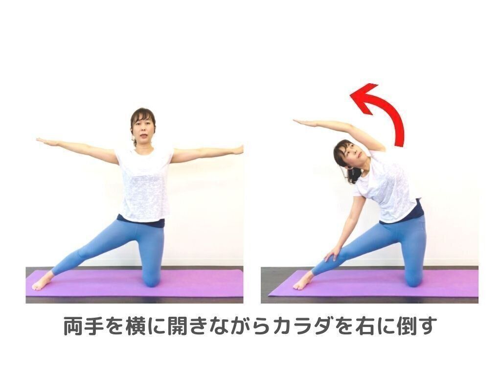 また、ゆっくり呼吸をしながら脇腹を伸ばすことは、背骨の緊張をとり内臓の働きを助けてくれます。