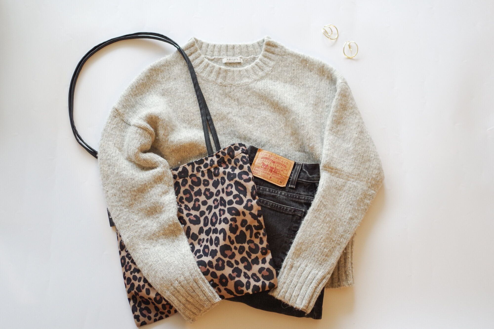 プチプラでバッグを購入するなら、普段着のコーデに馴染むアイテムが欲しい。ニット×デニムの「いつものコーデ」にレオパード柄を投入。季節感がグンと増し、どこか引き締まったコーディネートを叶えてくれます。