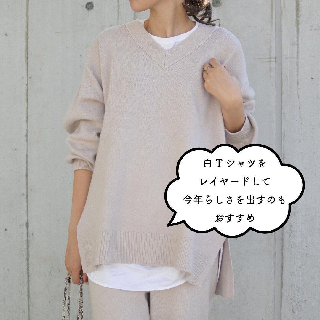 トップスを大きめサイズにしてゆるく着るのもおすすめ。ボトムにスカートをもってきてもいいですね。