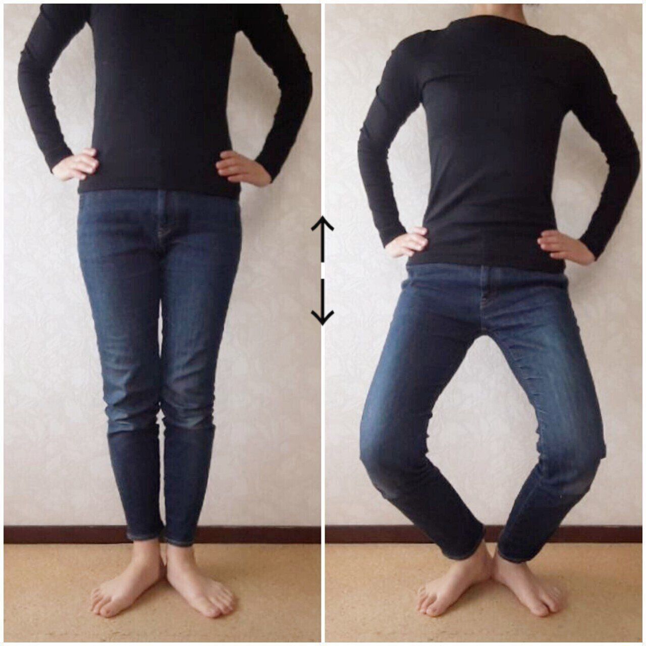 足は軽く開いて、つま先とひざはまっすぐ前。そして均等に体重をかけることで、もも張りを予防できます。