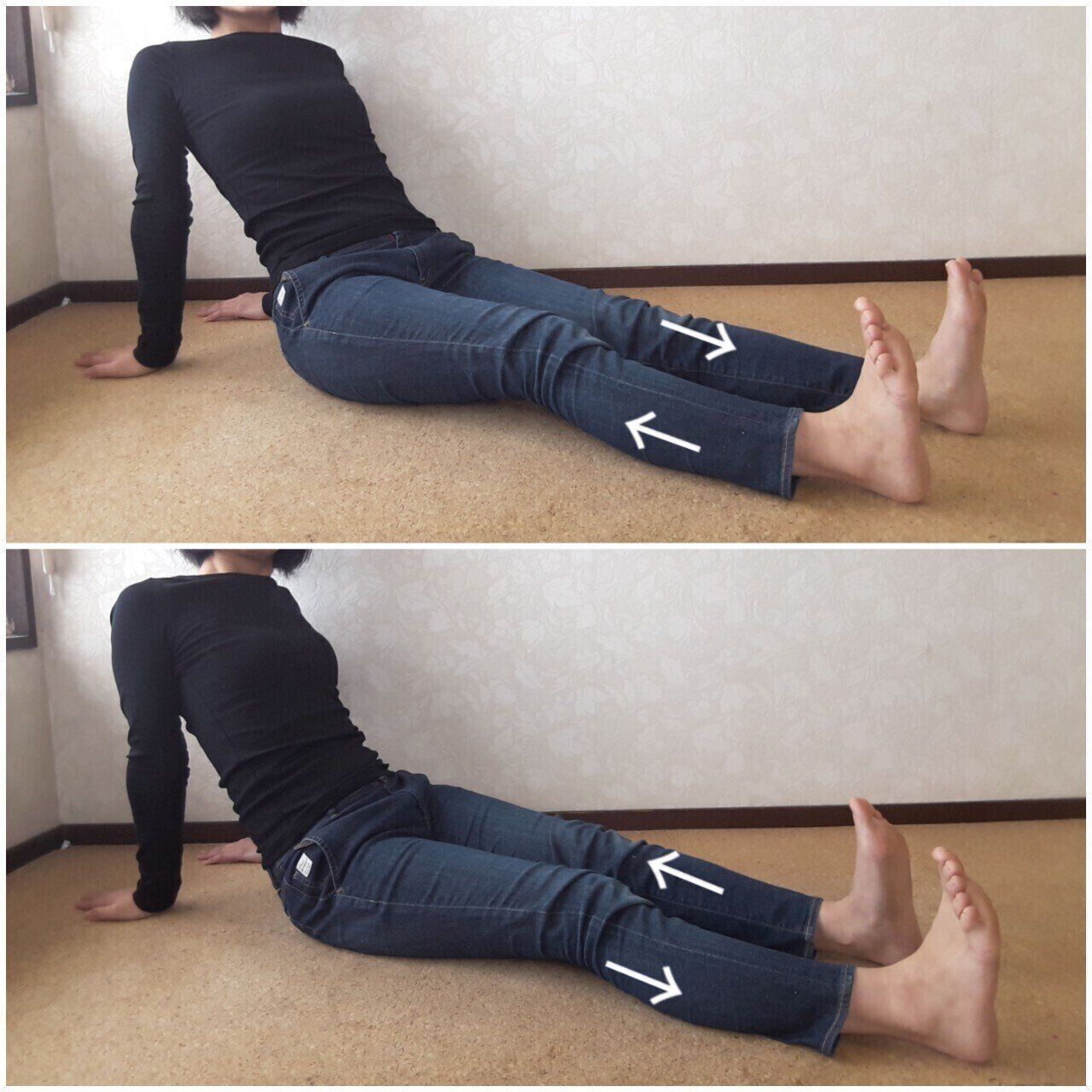 後ろに手をつき、足を前に投げ出します。