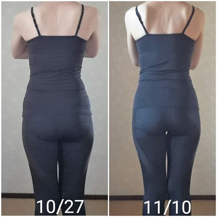 筋トレよりずっと軽いけれど、普段動かさないところを動かすというのは、大きな効果がありまして、40代の私でも2週間でこんなに変わりました!