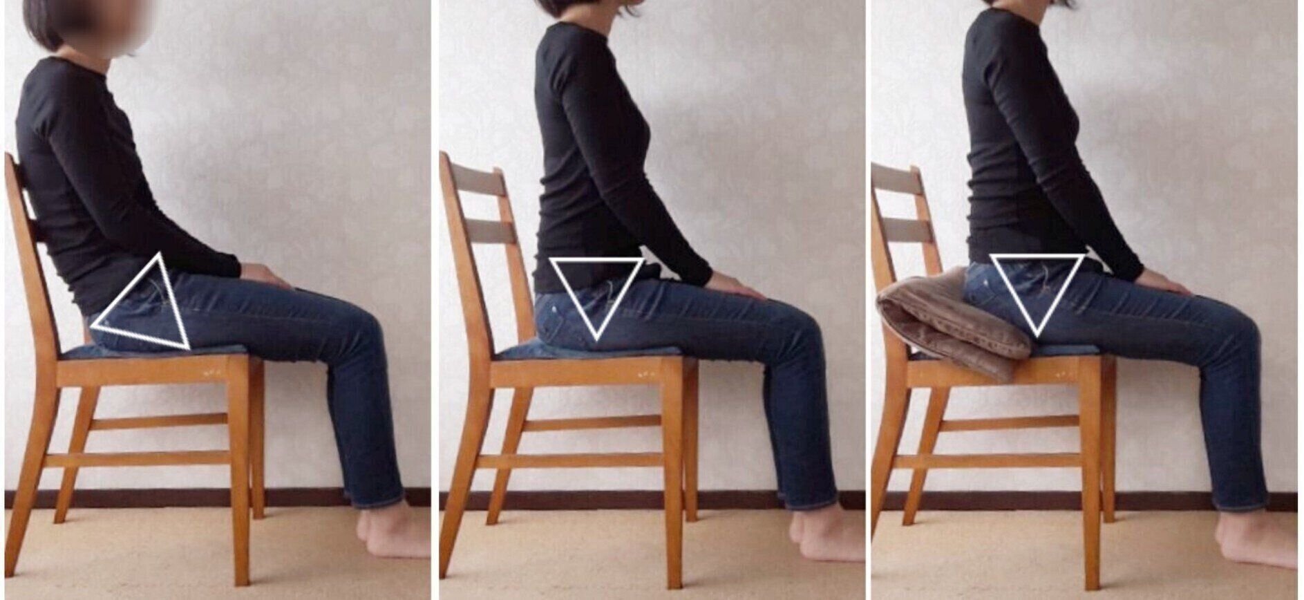 座ったときは、尾てい骨の先端が触れるなら骨盤が立っています。