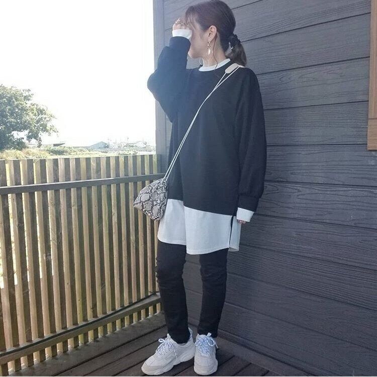 「ハイウエスト美脚スキニー(1,790円)」を使ったカジュアルコーデは、モノトーンでまとめることでワンランク上のカジュアルコーデに。スキニーパンツは伸縮性が抜群で動きやすいので、旅行やアクティブにすごすときにもピッタリです。