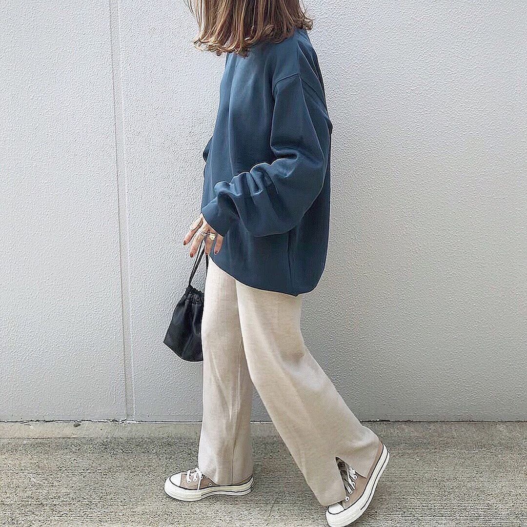 ニットパンツと合わせてご近所でもオシャレに