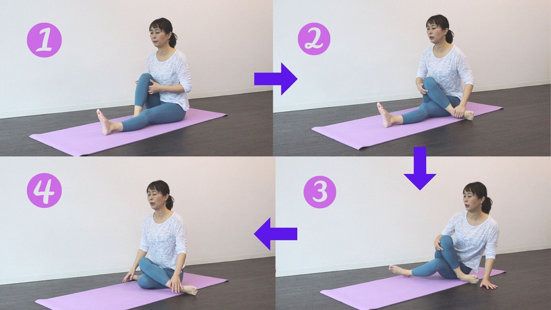 *左脚を曲げるのが辛ければ、右脚をかけた状態で左脚は伸ばしたままでもOKです。