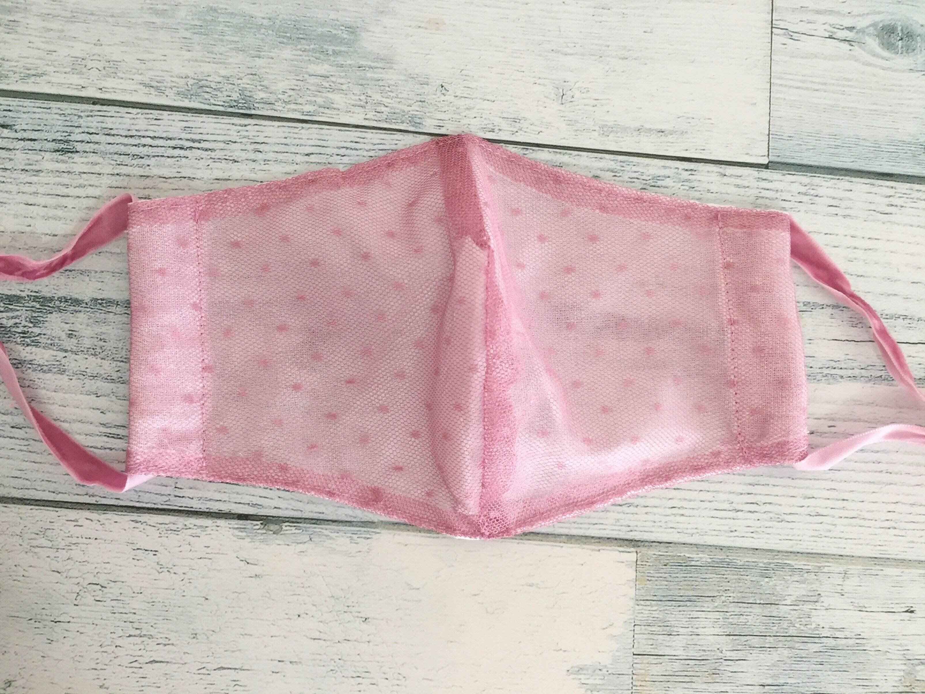 デザインが数種類あり迷ったのですが、筆者はピンクのチュールがかわいいファッションマスクをチョイスしました。