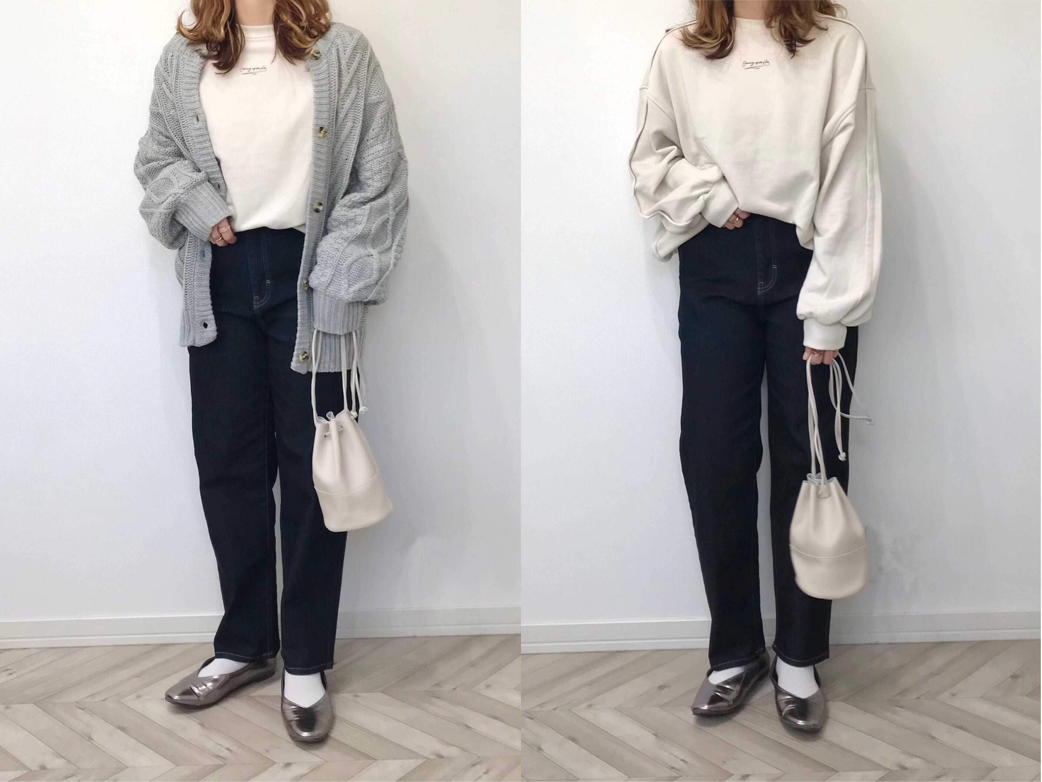 デニムは、ストレートタイプで、ストレッチが効いていて楽ちんなのにシルエットがとても綺麗なんです。
