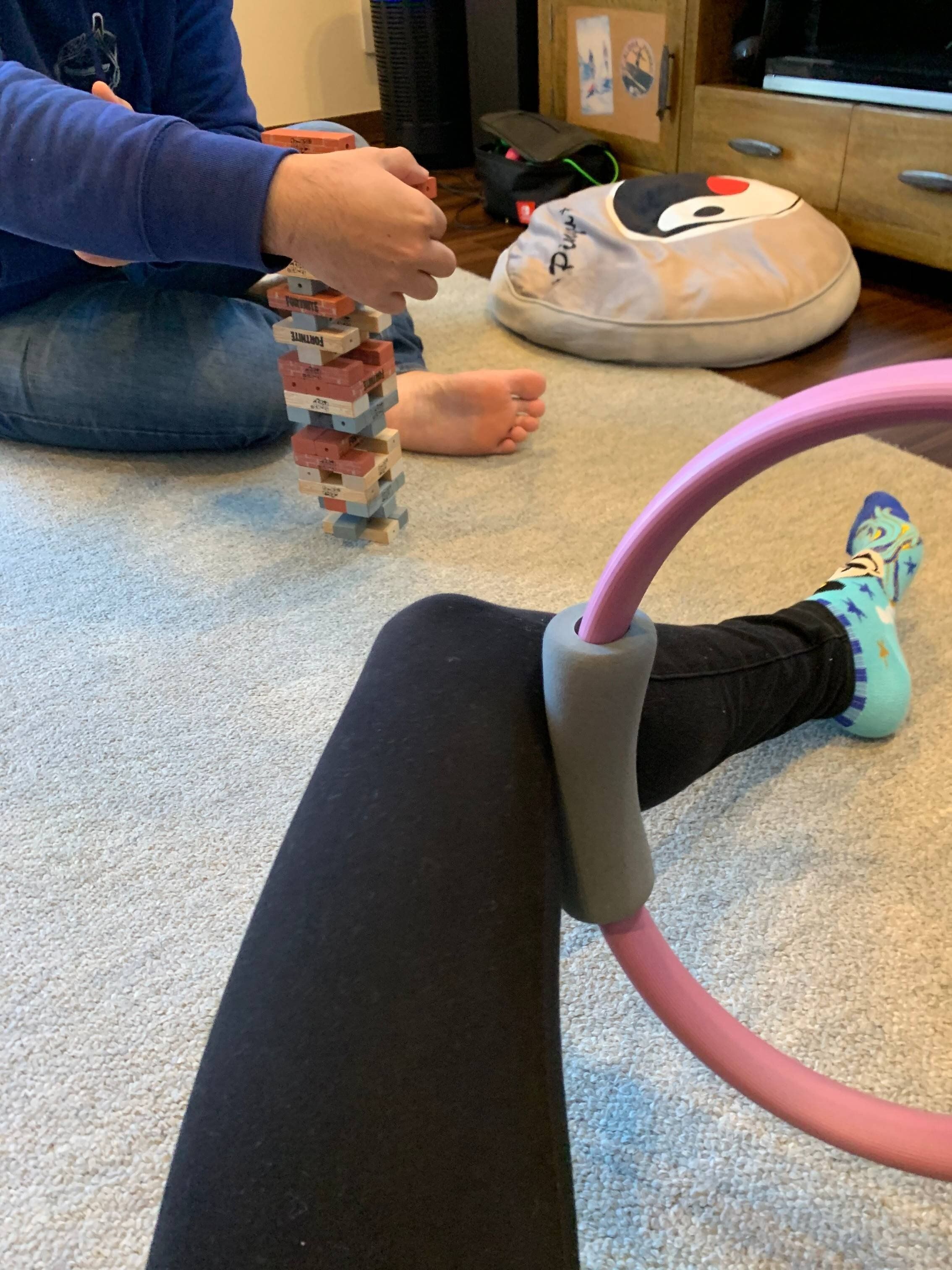 発売当初からこちらのゲームを楽しんでいる私ですが、プレイヤー1人しか遊べないゲームなので、息子とプレイする時は、いつもリングなし、ドーナッツクッションを使ってのエクササイズをしていました。