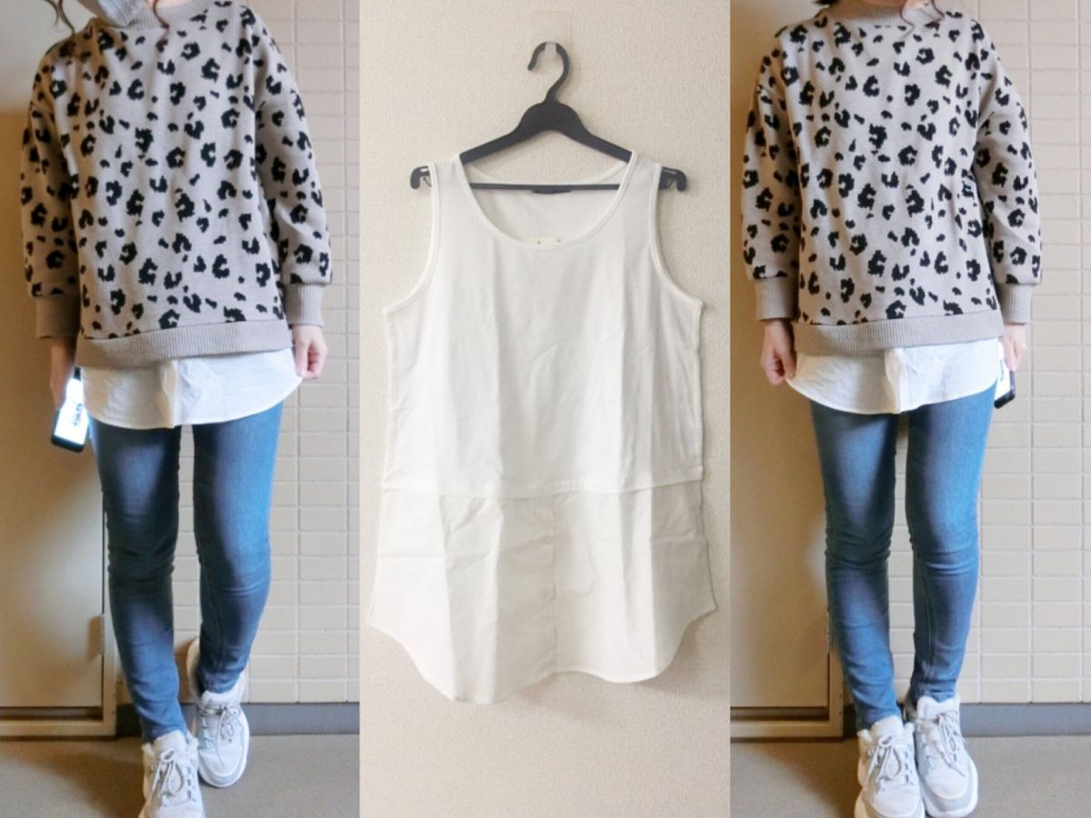 ニットやスウェットなどに長めのシャツを重ね着するスタイルが今年は大流行しているので、クローゼットに眠っているお洋服に重ね着風タンクトップをプラスすることで、流行のアイテムに!