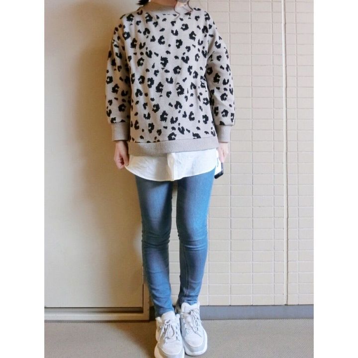 重ね着してシャツをチラ見せすることで、気になるお尻回りを隠すことができて、普段のコーディネートよりも着やせして見えます。