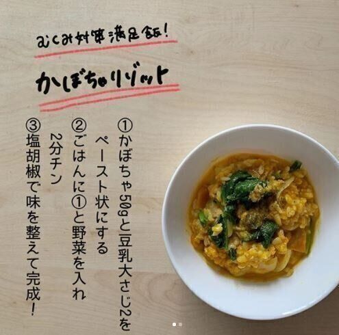 かぼちゃと豆乳の相性が抜群の、優しい風味のリゾットです。生米ではなくご飯を使って、電子レンジで簡単につくれます。好みの野菜を加えることで、アレンジも楽しめるでしょう。