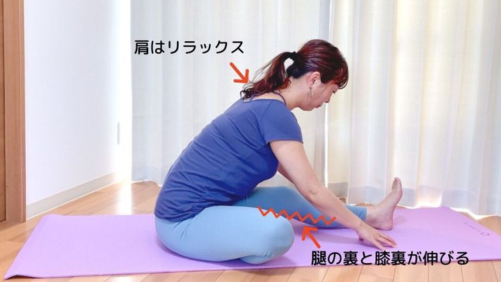 下半身太りが気になる方におすすめなのが、座って簡単にできる「がっせき前屈のポーズ」です。