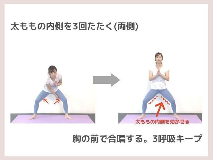 太もも痩せの効果が期待できる、半分のカエルポーズのポイントについて詳しく知りたいかたは、サンキュ!STYLEライターであるのぞみさんの解説を読んでみましょう。