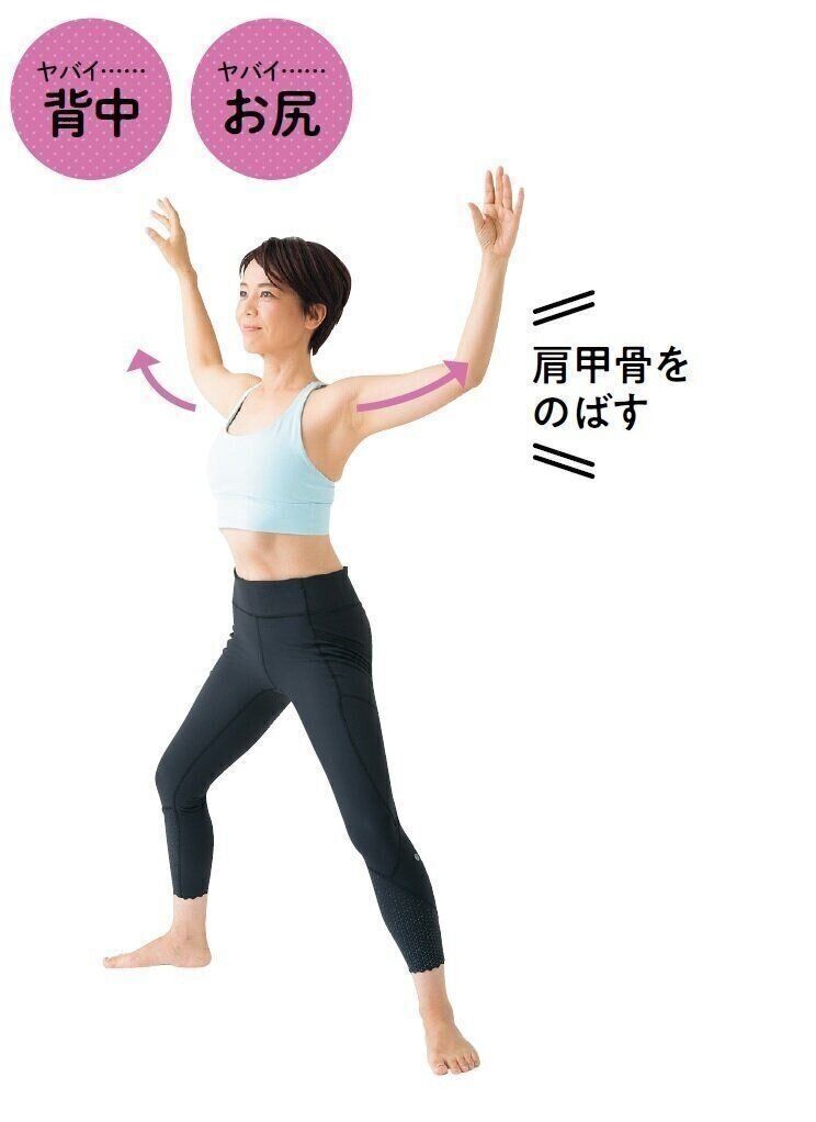 続いてご紹介するのは、背中とお尻が気になる方におすすめの「肩甲骨伸ばし体操」です。