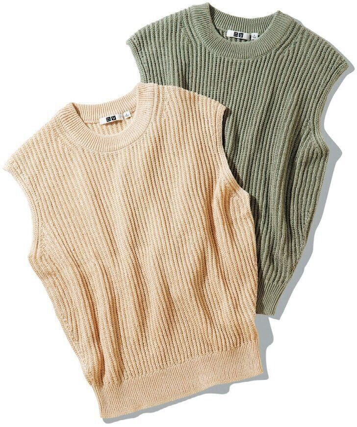 シンプルなコーデをぐっとあか抜けさせてくれるベスト。「コットンブレンドクルーネックセーター」(ナチュラル、ライトグリーン、ブラック・全3色)/ユニクロ ユー(ユニクロ)※1月下旬に一部店舗のみで発売予定。