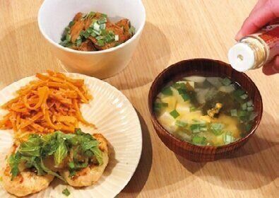おかずや汁ものにねぎや大葉などの薬味を加え、さらにしょうがもたっぷりプラス。しょうがはチューブや粉末タイプでラクチン調理。
