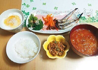 朝一で白湯を飲むのが日課。糖質オフダイエットで朝食と夕食では主食の炭水化物をとらないようにしている。昼食は職場にはべんとうを持参。朝食と夕食には温かい汁ものをつけるようにしている。
