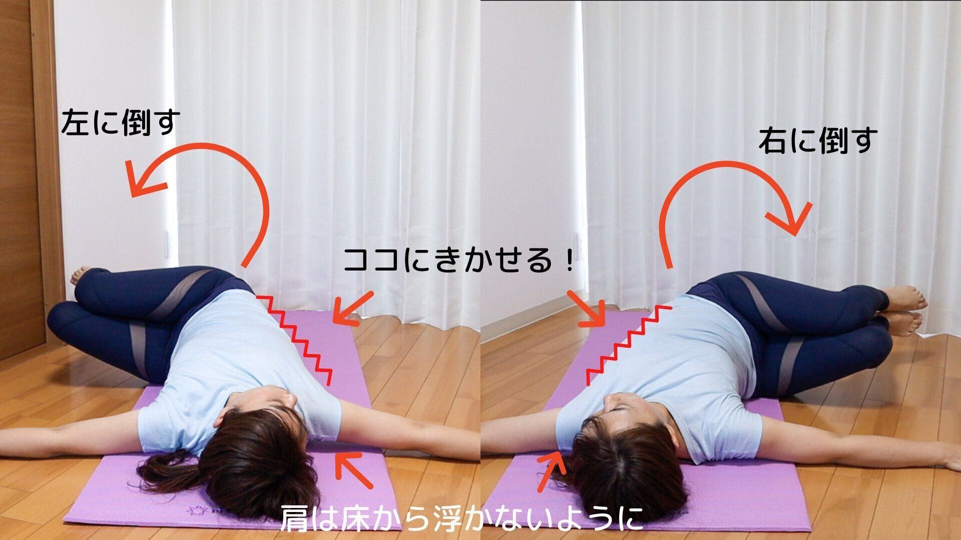 *肩が床から離れないようにします。