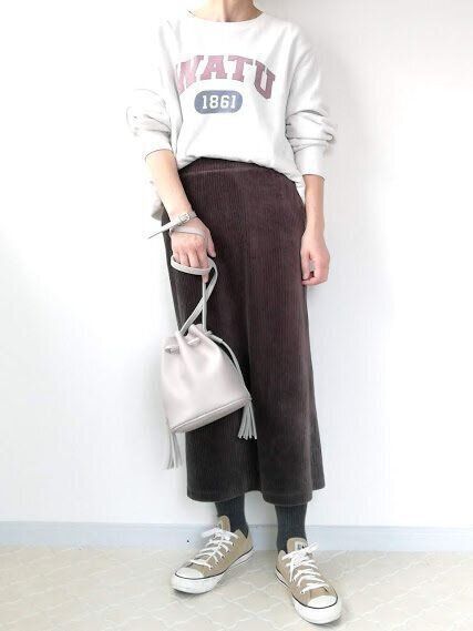 ロゴスウェット×タイトスカートの大人カジュアルコーデにON。
