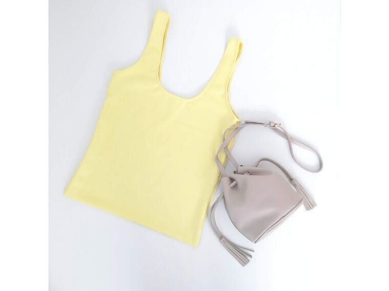 きれいなイエローのバッグは、持つだけで春らしく、テンションも上がります!