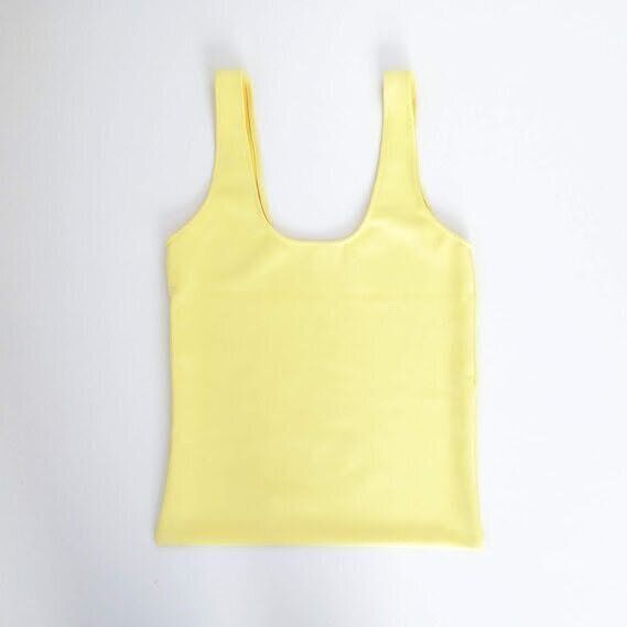 使い勝手のよさそうなエコバッグ型。コーデのポイントにぴったりな、きれいなイエローです。